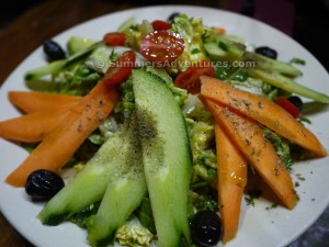 Our first dish was a tapas dish, noodles and vegetables.  It was incredible!  The flavors of sesame and ginger were so rich and tasty!Next we had the fresh salad, and was it ever fresh!  I always love when you can take a bite of produce and tell that it is fresh and crisp.
