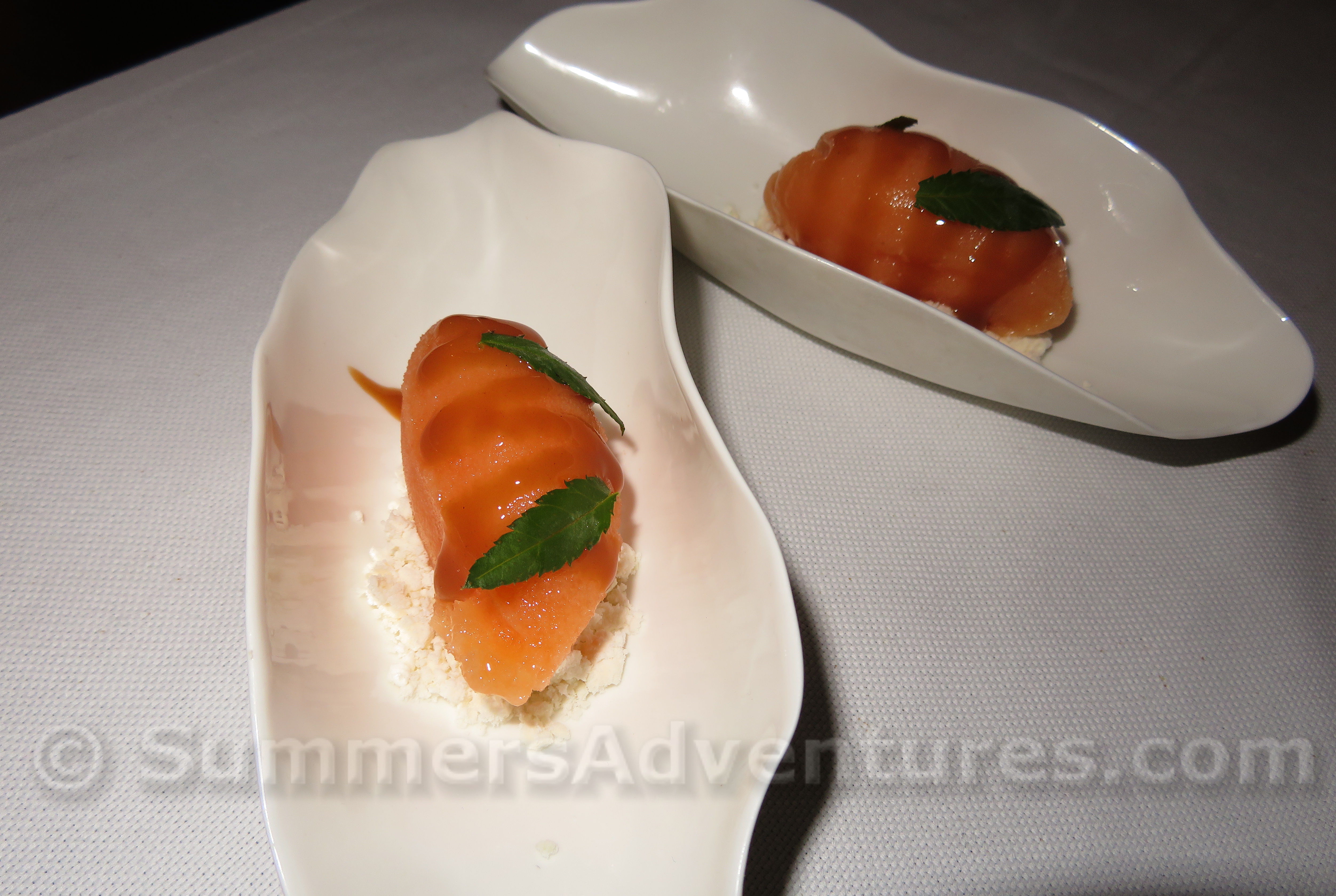 There was a grapefruit sorbet with a caramel tamarind sauce and powder of combava that I would eat every single day if I could, the meld of the flavours was incredible.  I am salivating right now just remembering the taste. grapefruit sorbet caramel tamarin sauce