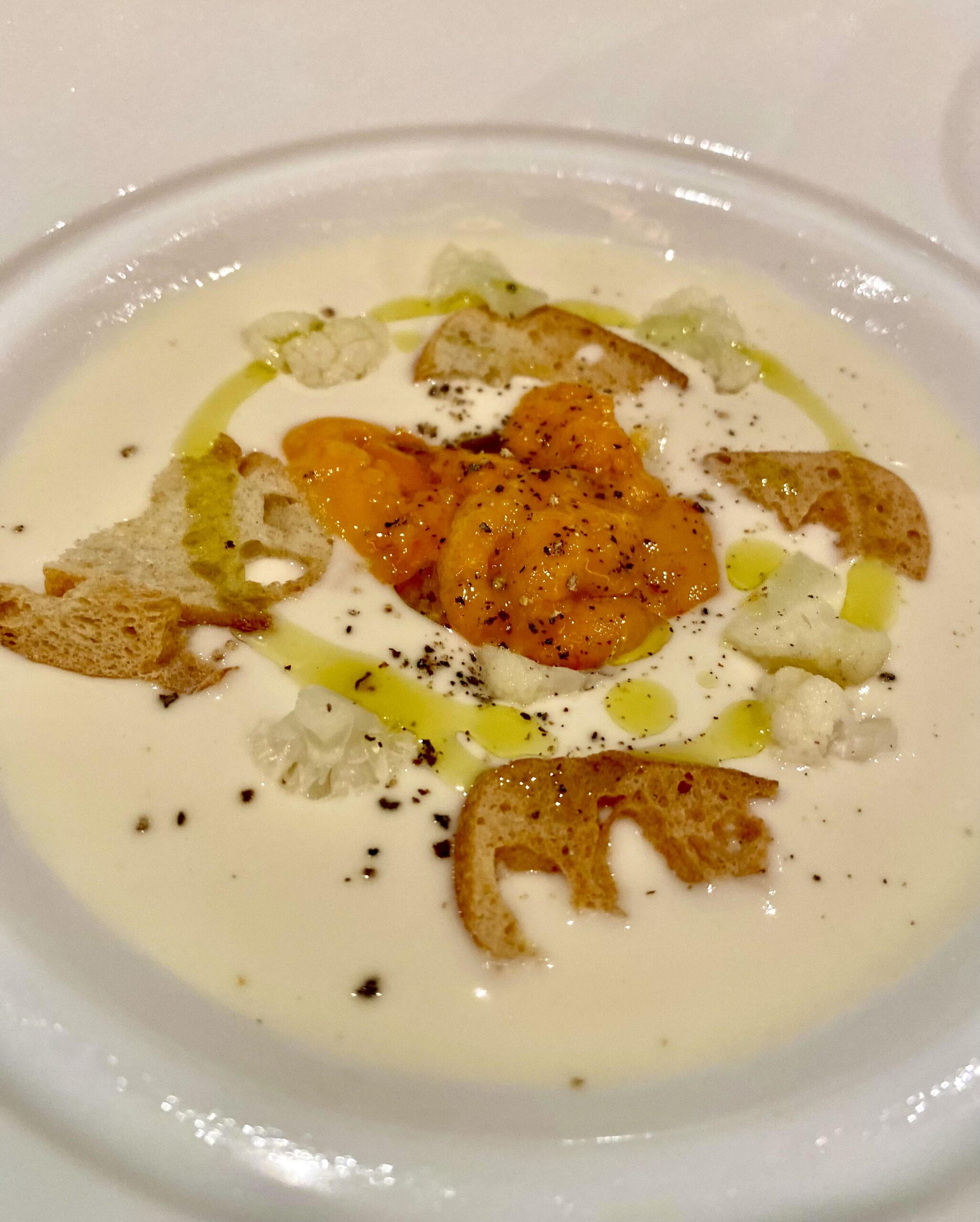 We started with the ‘Chilled Cauliflower Potage with Hokkaido Sea Urchin’. This dish was amazing. The texture was silkier than buttermilk, the flavor was so creamy and delicious. The sea urchin was a beautiful addition with its unique flavor and bright color. Even the toasted bread in the soup tasted of the highest quality.