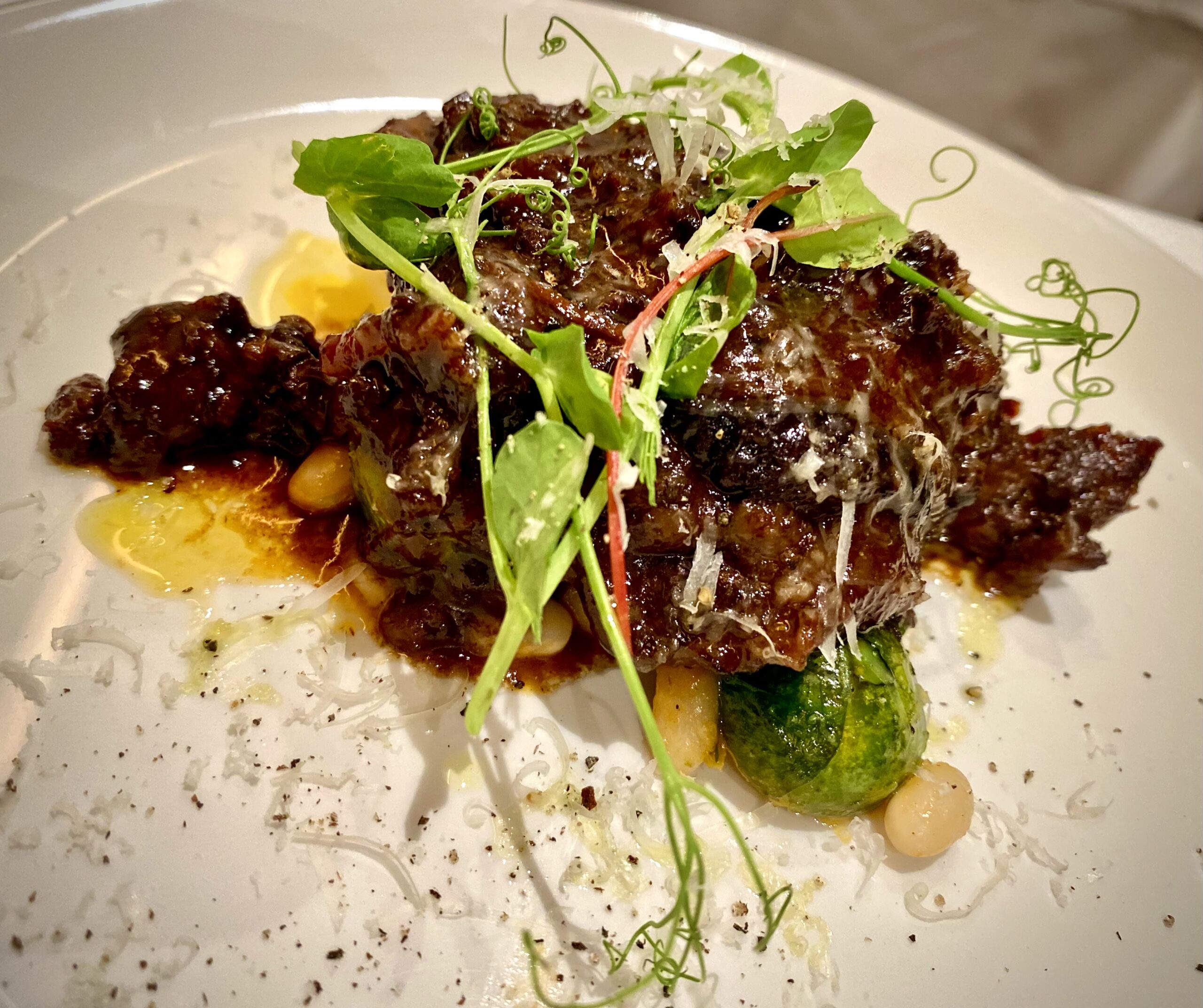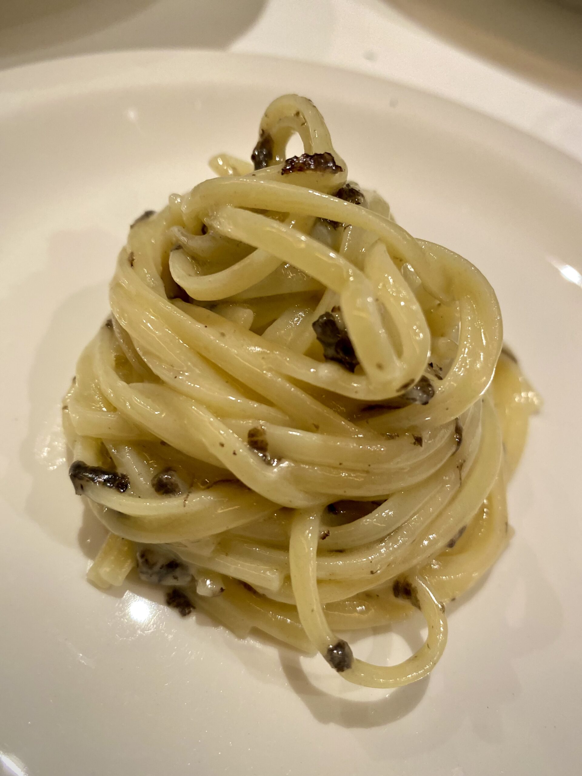 Our second pasta was the ever-classic ‘Cacio e Pepe’ also topped with truffle. It was immediately apparent the use of high-quality ingredients that went into this dish. There is a delicate touch used to make sure that the pepper isn’t overpowering. It was explained to us that they use seaweed alongside the pepper to truly allow the truffle to sing, which I found brilliant. You can taste the decadent quality with each bite.